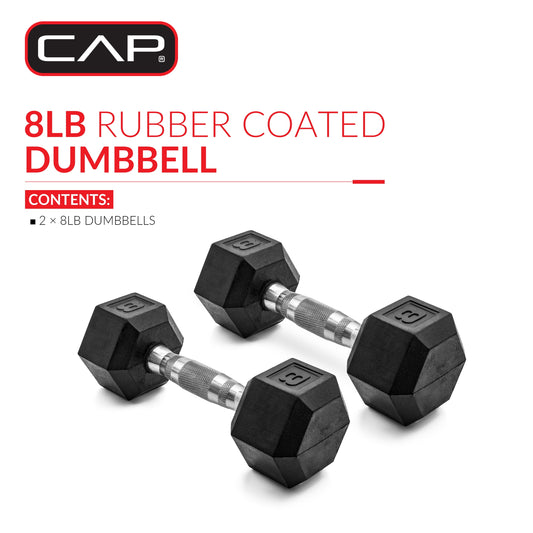 Barbell, 8Lb Coated Rubber Hex Dumbbell, Pair