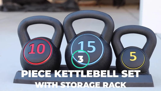 Pro 3-Piece Kettlebell Set Fitness Strength Training Exercise with Base Rack