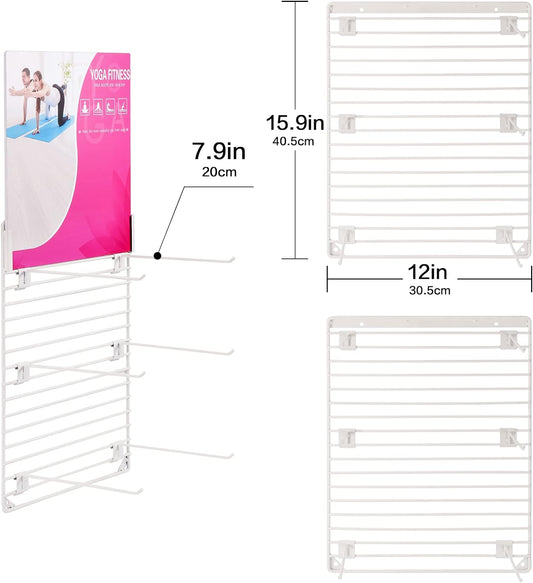 Yoga Mat Rack Wall Mount Foam Roller Storage Gym Organizer Yoga Mats Holder Yoga Mat Organizers and Storage Metal Grid Hooks Adjustable