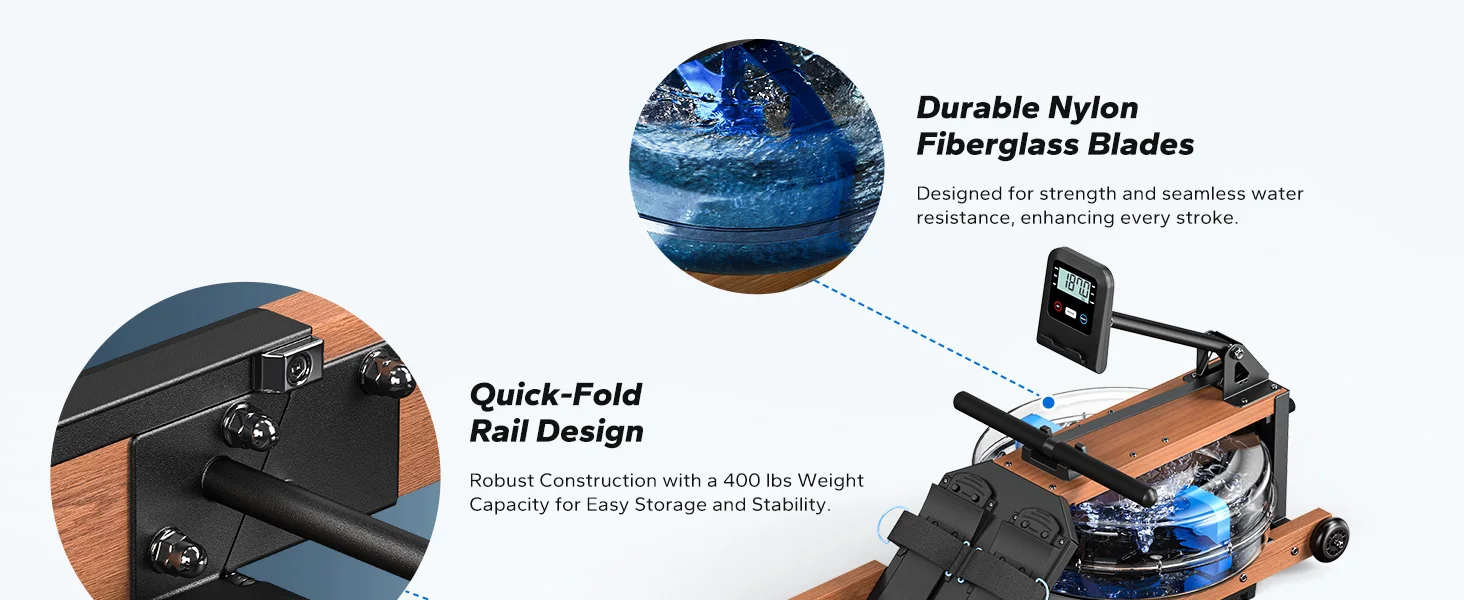 • Never Worry Leaking Problem: This folding rowing machine features a large water tank for ample resistance, wear-resistant, scratch-proof construction, and aerospace-grade sealing that remains leak-proof even when stored upright.